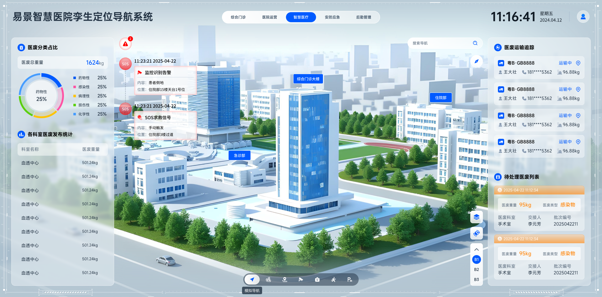 应急救援快速响应:在急诊场景下,通过定位系统实时追踪急救人员、急救设备的位置,结合医院三维地图实现最优救援路径规划;同时将定位数据与急诊绿色通道系统联动,提前做好诊疗准备,为危重患者争取宝贵的救治时间。