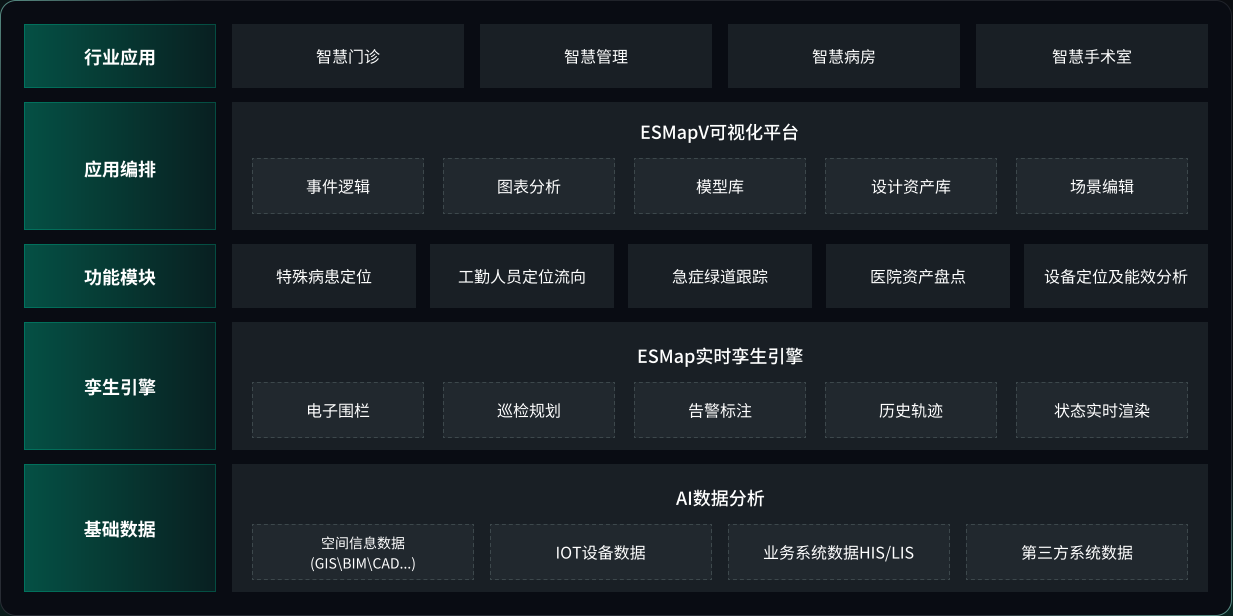 基于核心定位技术与数据融合能力,ESMAP在智慧医院核心场景实现了全流程技术赋能,每个场景均具备明确的技术实现逻辑与落地效果: