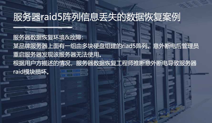 某品牌服务器上面有一组由多块硬盘组建的riad5阵列。意外断电后管理员重启服务器发现该服务器无法使用。