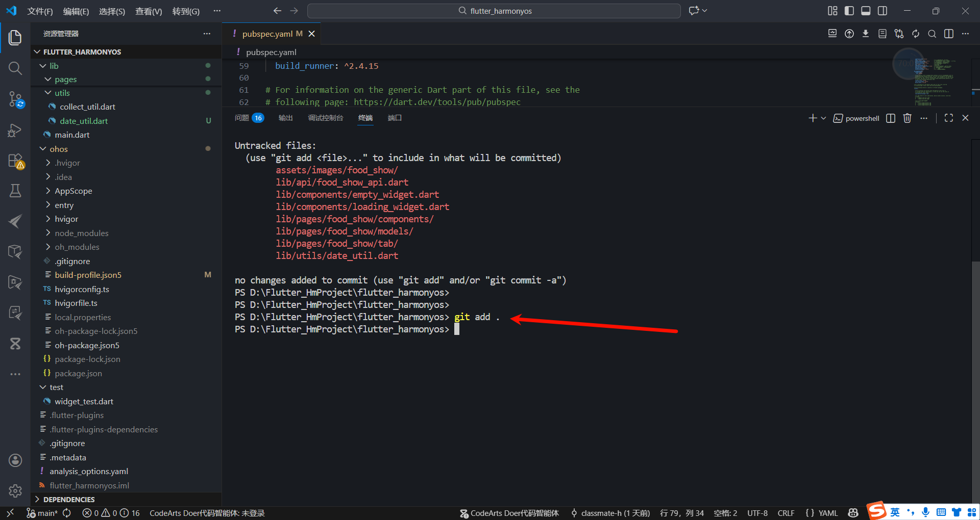 📂 3. 项目初始化:基于现有flutter_harmonyos工程,调整目录结构,安装依赖。
