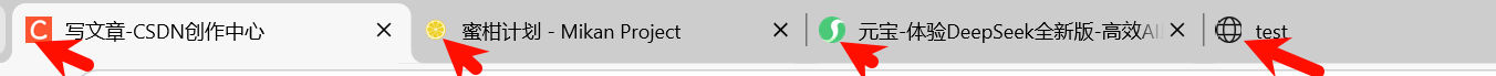 可以发现,我们自己的网页此时没有图标,所以是默认的这个网状球,其他网页都有自己的图标。