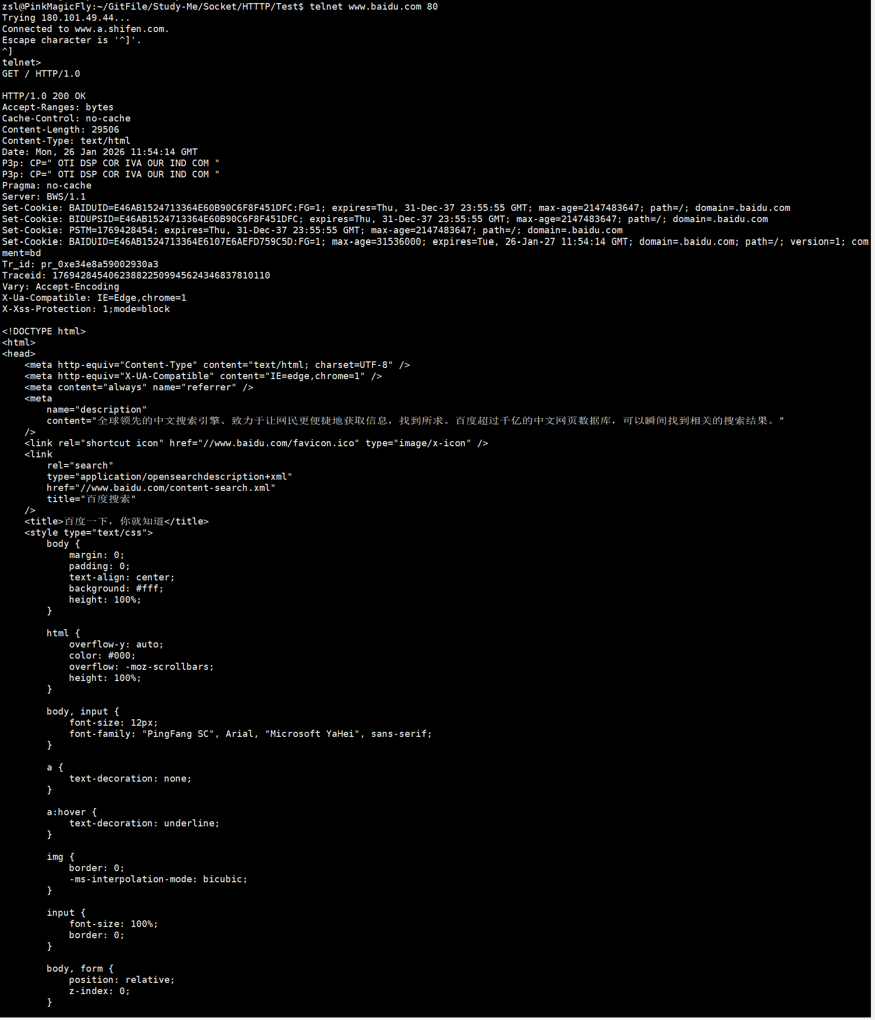 我们可以用telnet在linux上发送http请求,并获取应答