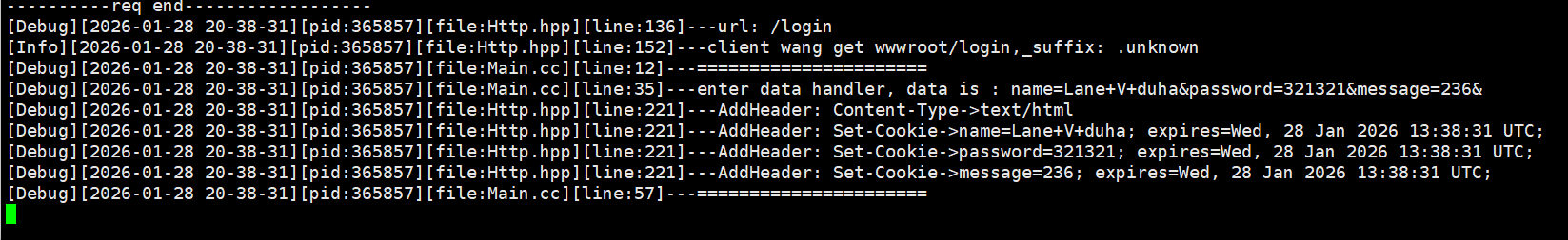 别管日志部分,我请求最后没有加换行。