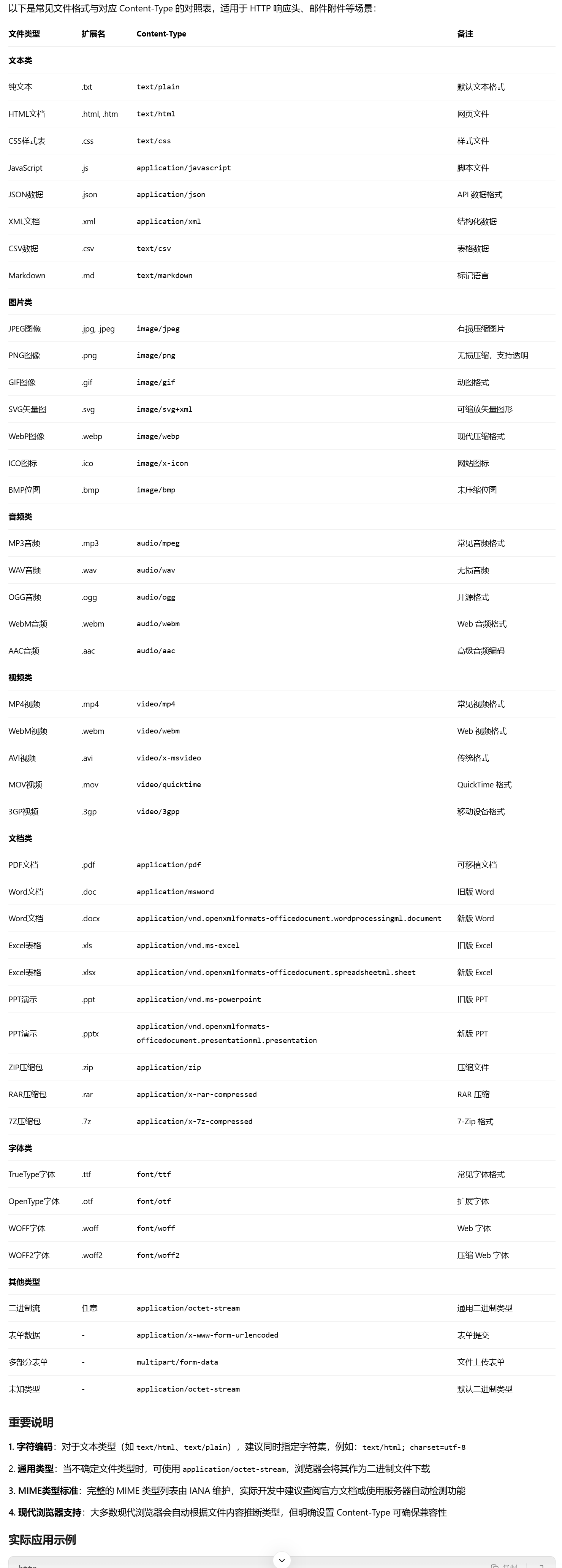 以下为AI生成,也可以去网上搜,这个很多的。HTTP content-type | 菜鸟教程
