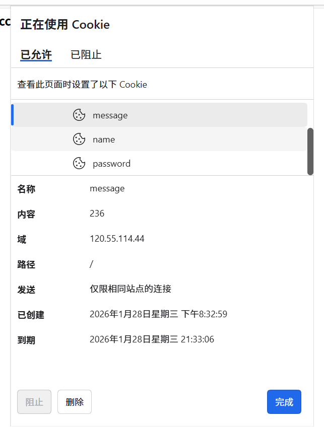 会话 Cookie(Session Cookie) :在浏览器关闭时失效。