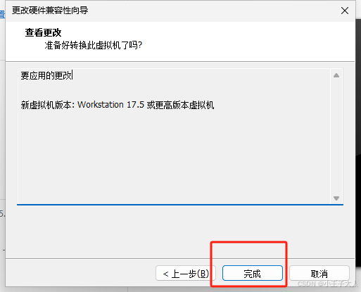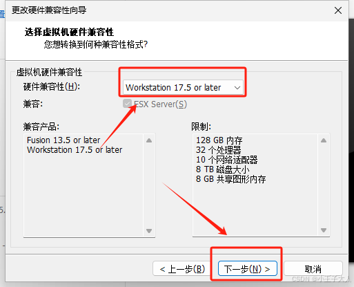 5、将硬件兼容性更改为17.x 或17.5 or later ,如下图所示: