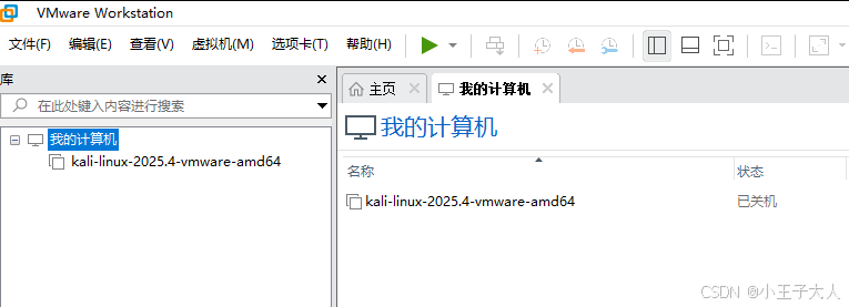 2、在vmware 计算机列表找到kali-linux-2025.4。