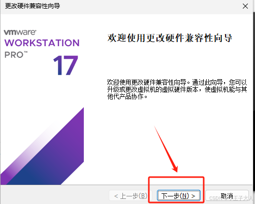 4、进入更改硬件兼容性向导,并点击下一步。
