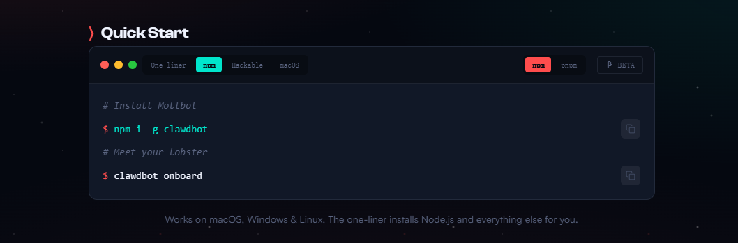 星图云环境已预装最新的 Node.js 并配置了镜像加速。我们推荐通过官方 npm 方式快速全局安装 Clawdbot: