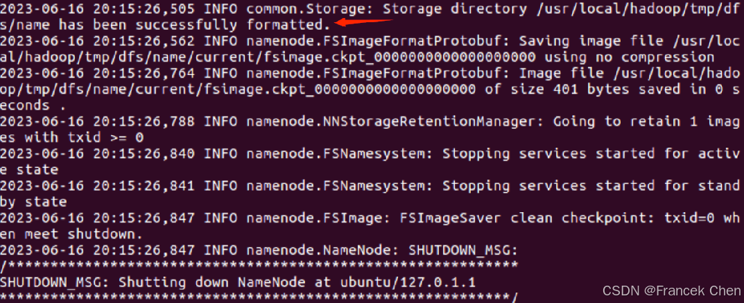 图1 执行名称节点格式化后的提示信息