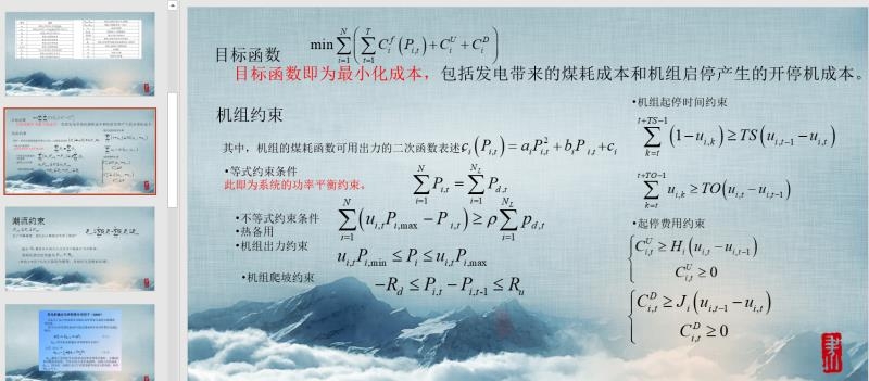 这里用x_status这个二进制变量控制机组是否出力,直接把出力范围和启停状态绑定了。注意爬坡率约束加了时间条件判断,避免首小时出现负索引。