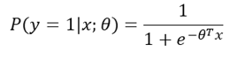 P(y=1|x;\theta) = \frac{1}{1+e^{-\theta^T x}}