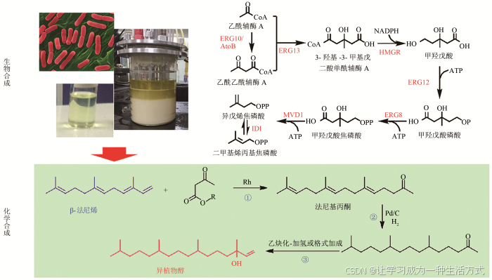 图6 生物-化学法以生物基法尼烯合成维生素E合成关键中间体异植物醇