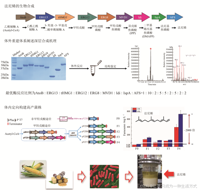 图7 定向代谢合成指导的大肠杆菌高效合成法尼烯