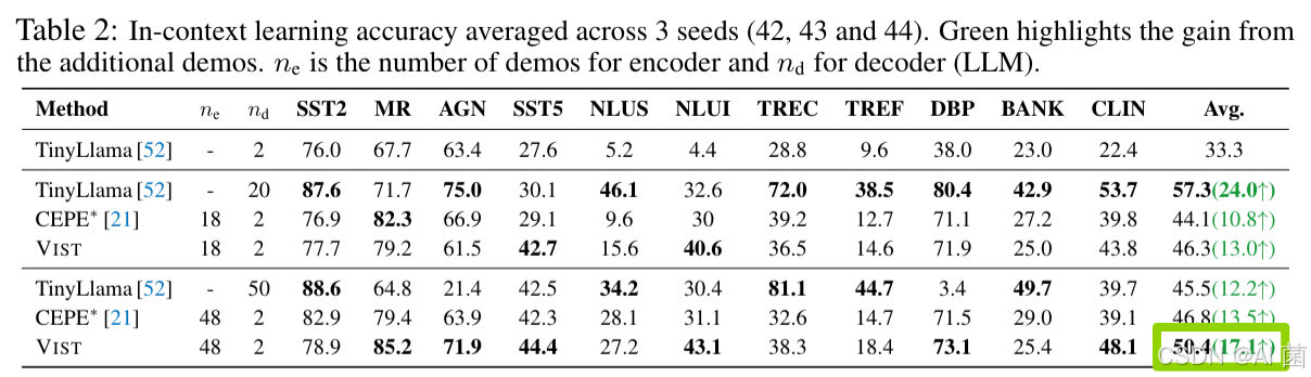 - VIST在11个数据集上平均准确率达50.4%,较CEPE∗提升3.6%,且随着演示样本数量增加,性能稳步提升(+17.1%);