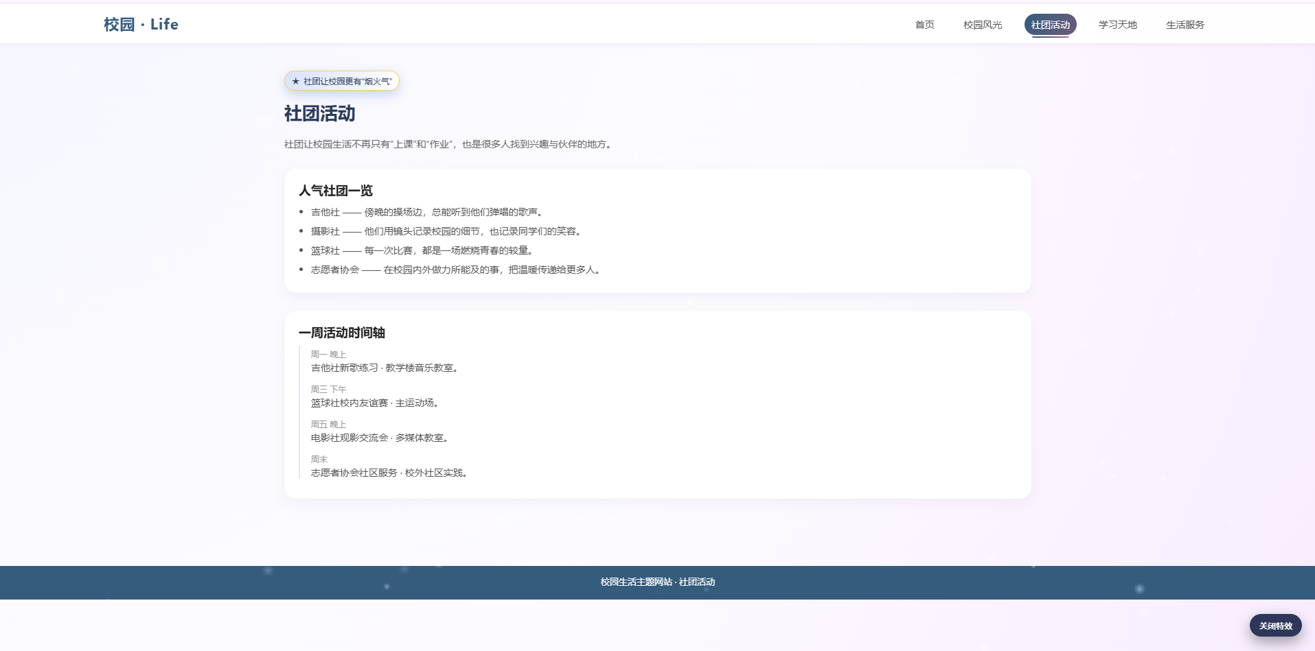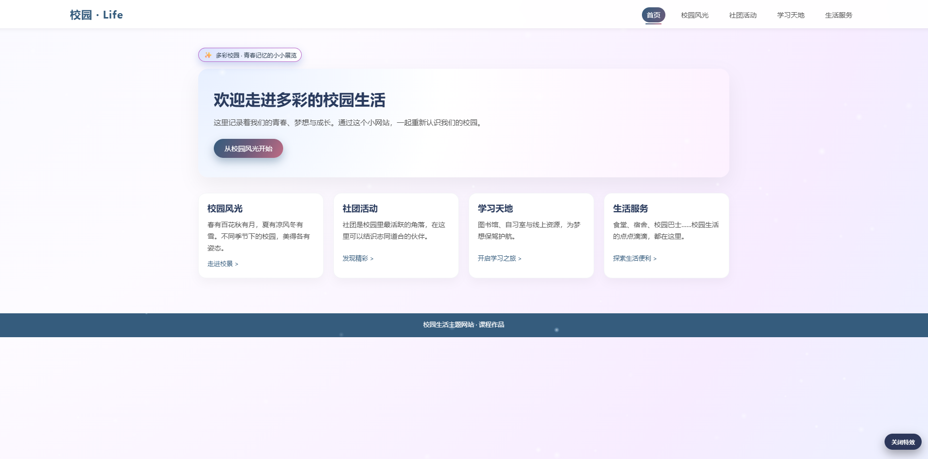 <p contenteditable="true">校园生活主题网站 · 课程作品</p>