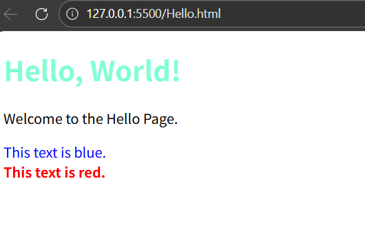 <h1 style="color:aquamarine;">Hello, World!</h1>