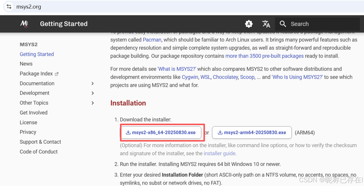 或更集成的 MSYS2官网 :https://www.msys2.org/