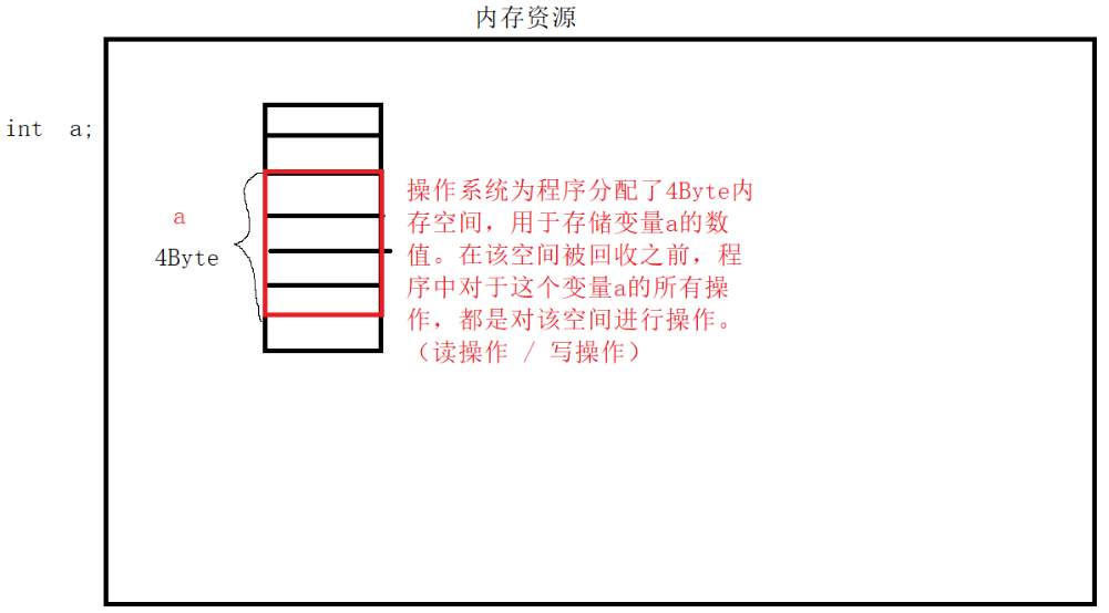 2.操作变量的本质,是操作变量在内存中对应的一段空间。变量名相当于一种代号,能帮助访问到内存中的一段空间。