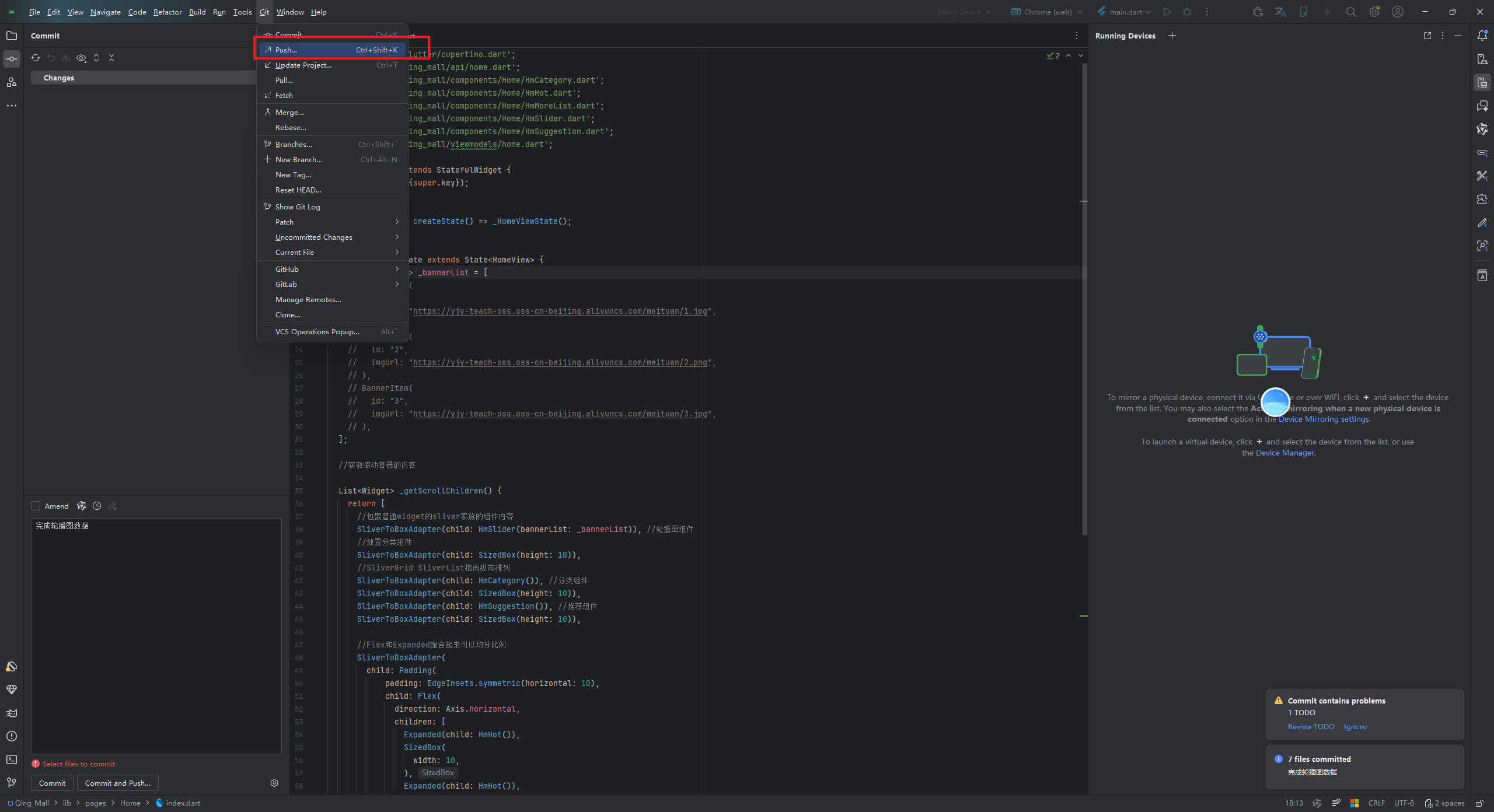 最后,别忘了提交代码哦。这次我们改用Android Studio的可视化进行git的提交。