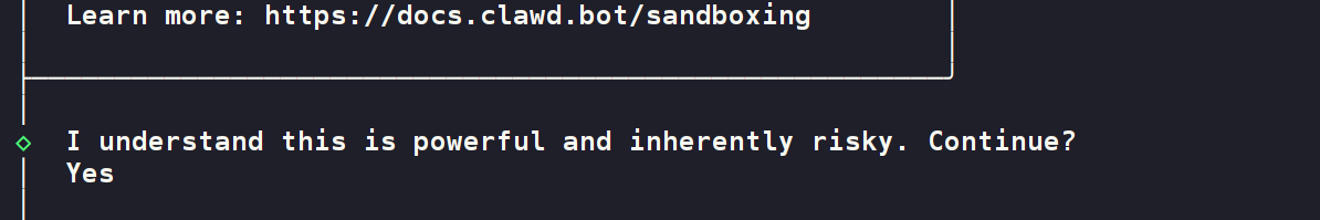 但得益于我们前期的虚拟机隔离策略,此刻我们可以从容地输入 Yes 予以授权,而不必担心宿主机安全。