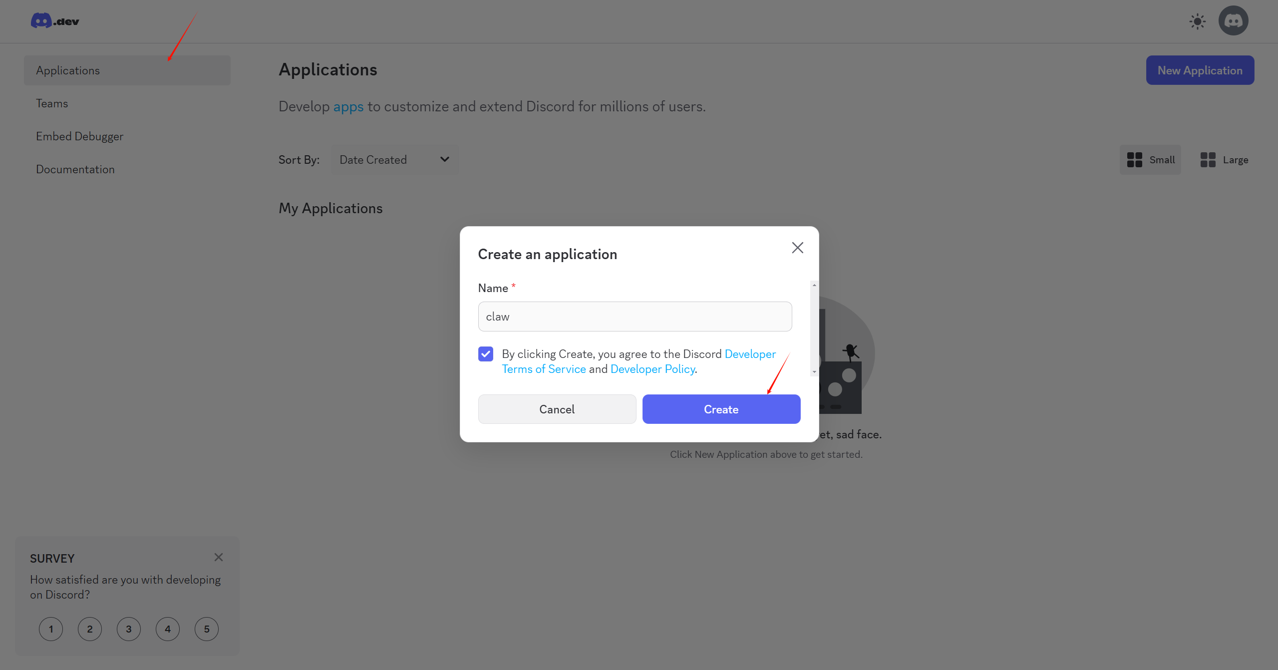 前往 Discord Developer Portal,创建一个新的 Application (应用实例)。