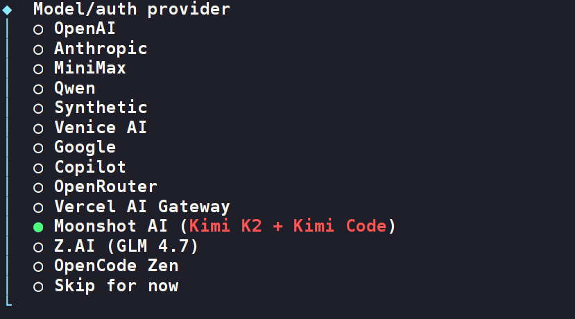 随后进入模型选择阶段。Moltbot 本身是架构层,其智力来源于底层大语言模型。它兼容 OpenAI、Anthropic 等国际主流标准。