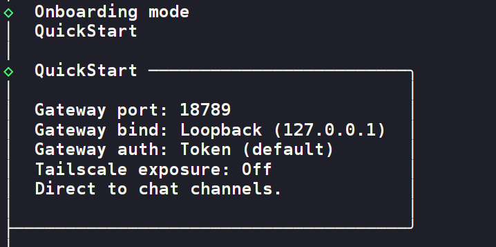 安装完成后的首要任务是配置网关,系统会默认监听 18789 端口。