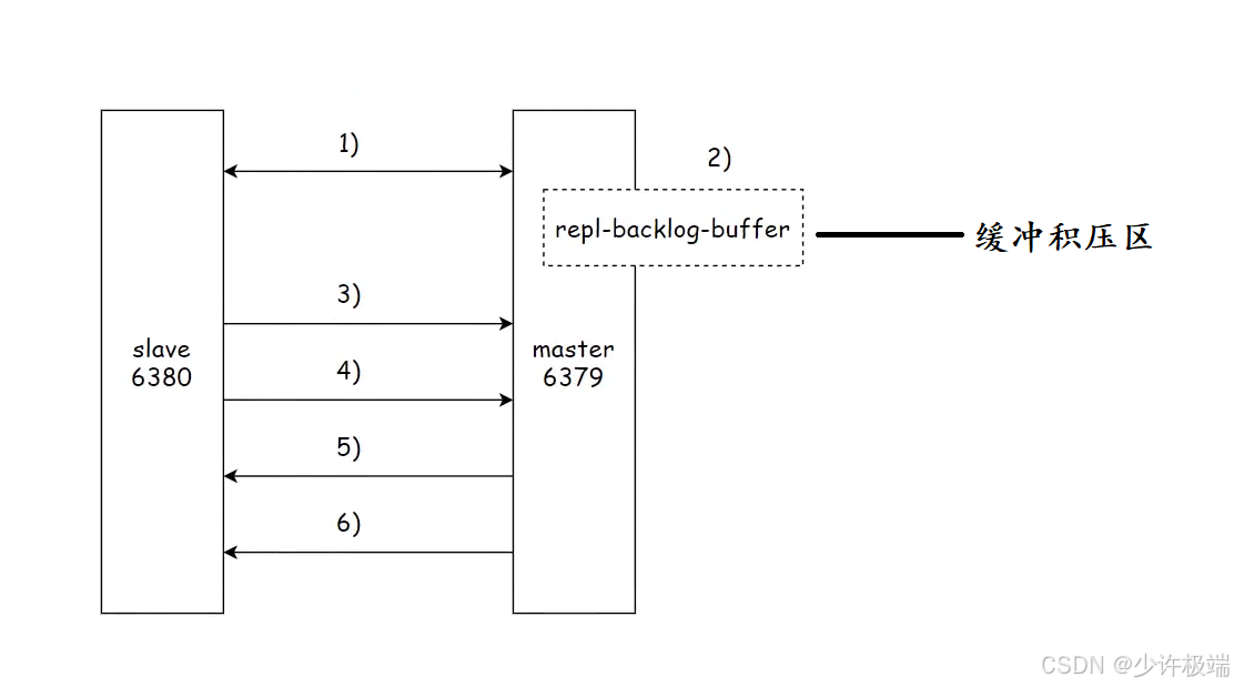 6) 主节点将挤压缓冲区需要复制的数据传输给从节点, 从节点进行复制