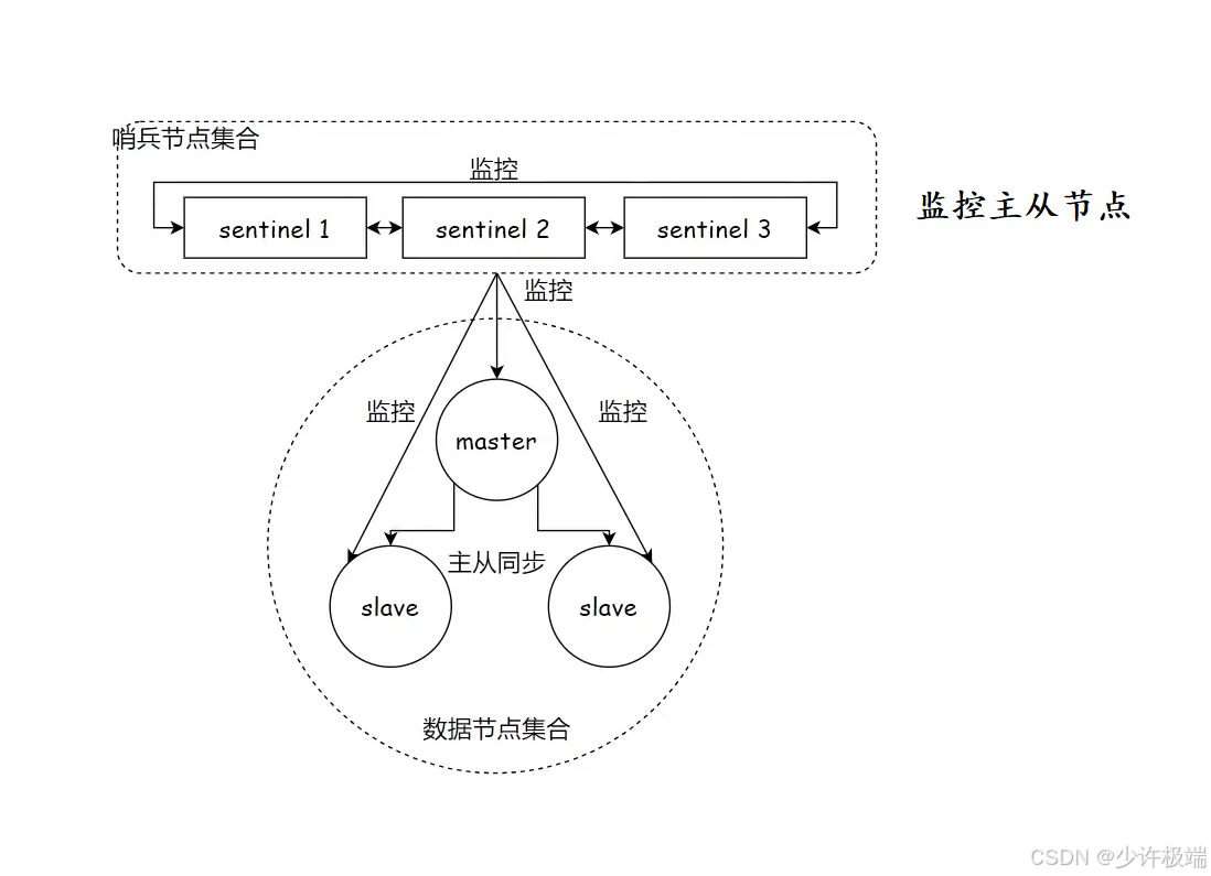 1. 哨兵集合: 由多个哨兵组成的集合, 当有主节点宕机之后, 一个哨兵发现异常不能说明情况, 只有当多个哨兵都认定当前主节点宕机时, 才会进行判定, 主要是为了防止误判