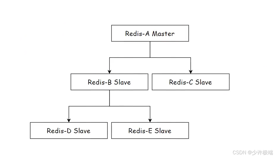 树形拓扑结构减少了主节点向从节点同步数据时的网络开销, 主节点往下一层的从节点同步数据, 从节点同步完数据后接着往更下子层的从节点来同步数据, 层层接力, 从而减轻了主节点的压力, 但该模型存在的问题主要是网络传输延迟较大, 数据同步可能较慢, 适用于对数据一致性要求不高的场景