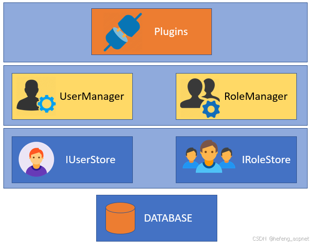 AspNetUsers、``AspNetRoles、``AspNetUserClaims、``AspNetUserLogins...``UserManager<TUser>并RoleManager<TRole>协调读写操作。 -