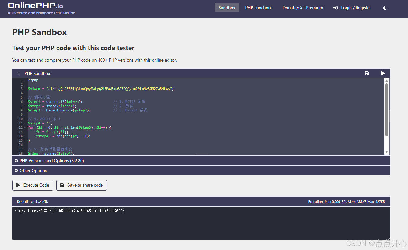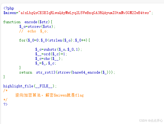 $step1 = str_rot13($miwen); // 1. ROT13 解码