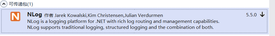 安装完成后,项目中会使用 NLog 作为日志框架。