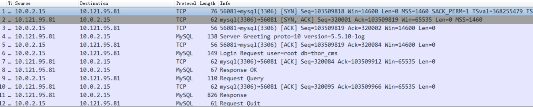 远端mysql发起请求:
