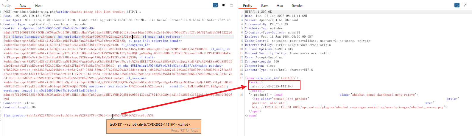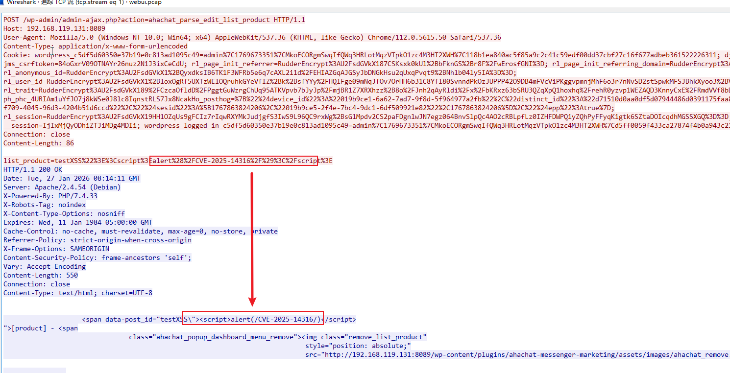 echo " - 漏洞点: POST /wp-admin/admin-ajax.php?action=ahachat_parse_edit_list_product"