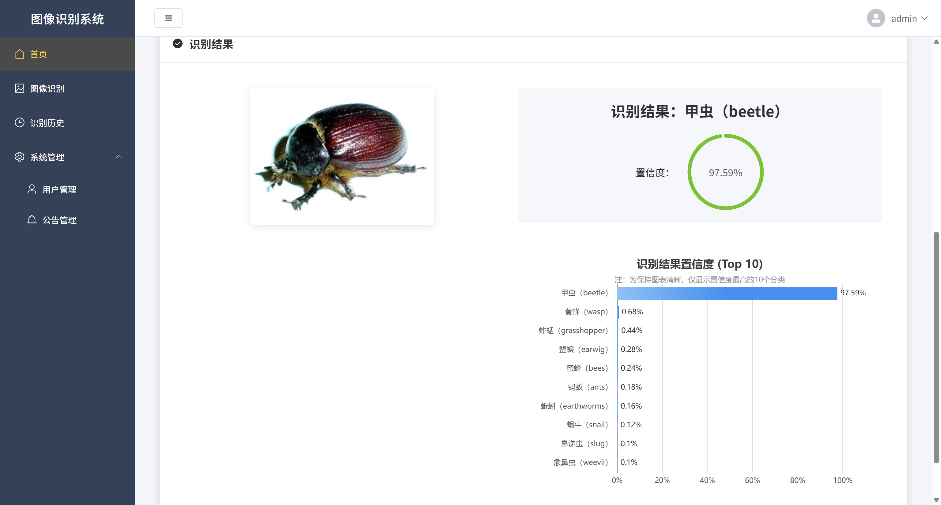 系统主要功能包括:用户注册与登录、害虫图片上传、实时识别、识别历史记录查询、数据统计可视化等。用户可以通过上传害虫图片,
