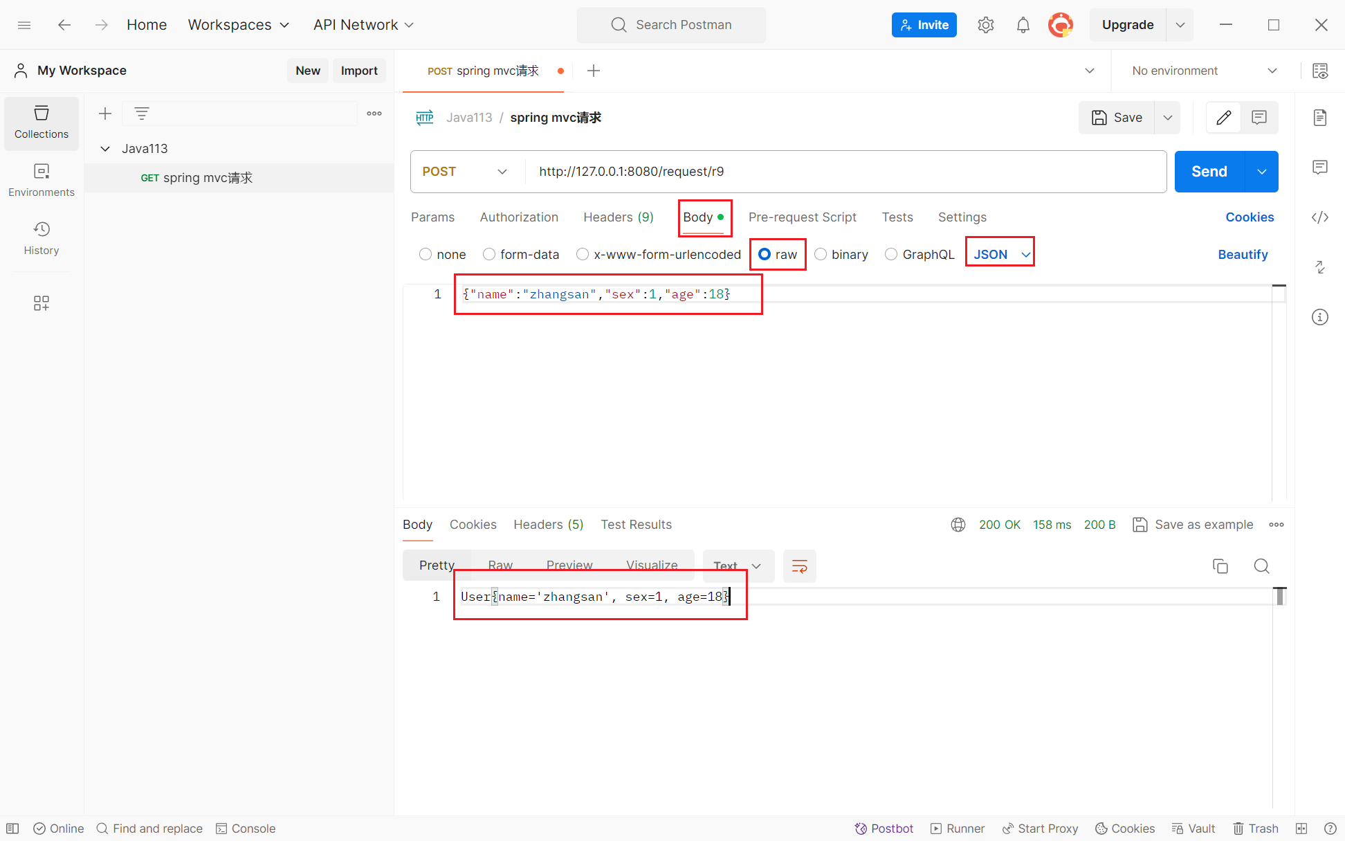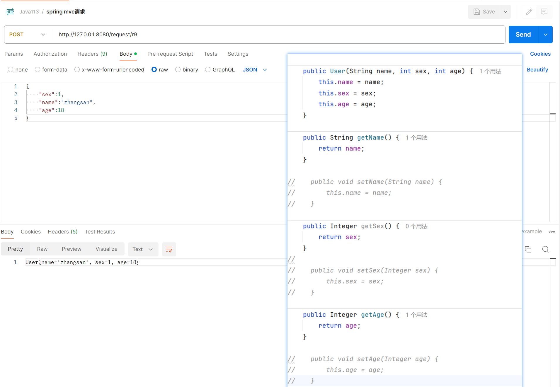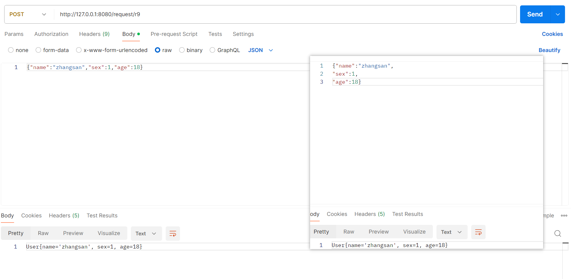 json数据中,sex 和 name 的顺序,和类的属性的定义顺序不一样,也能够接收数据。