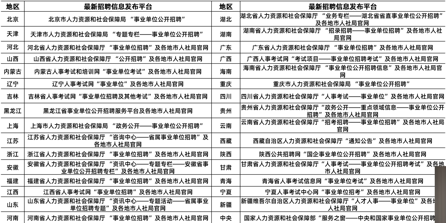 事业编部分地区官网