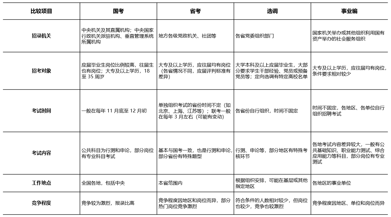 国考,省考,选调,事业编