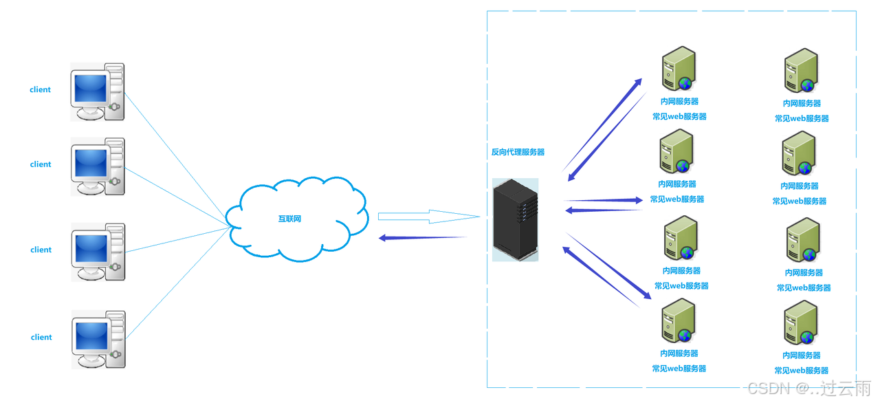- 代理回传响应至客户端:反向代理对响应做后续处理(如缓存静态资源、修改响应头),最终将处理后的响应转发给发起请求的客户端。