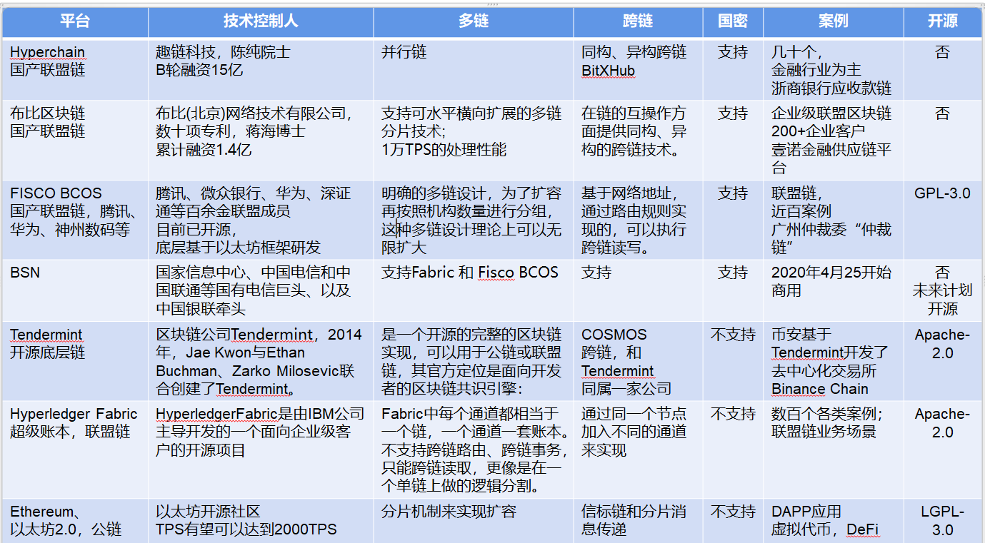 | Hyperchain | 国产联盟链 | 趣链科技(陈纯院士) | B轮融资15亿,国产化程度高 |
