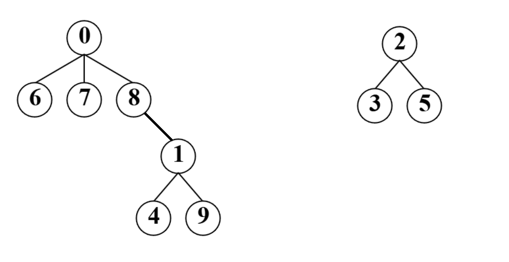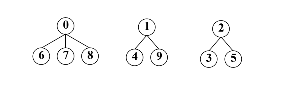 例如刚开学,有好多的新同学,大家一开始都不认识,因此各自一个集合,给每个同学编号,即0-9,数组中的数字代表该小集体中具有的成员个数