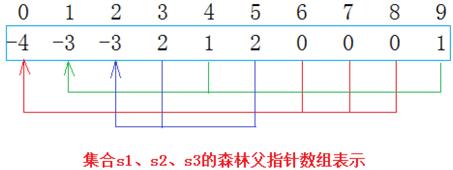 ②数组中如果为负数,负号代表根结点,数字代表该集合中的元素个数