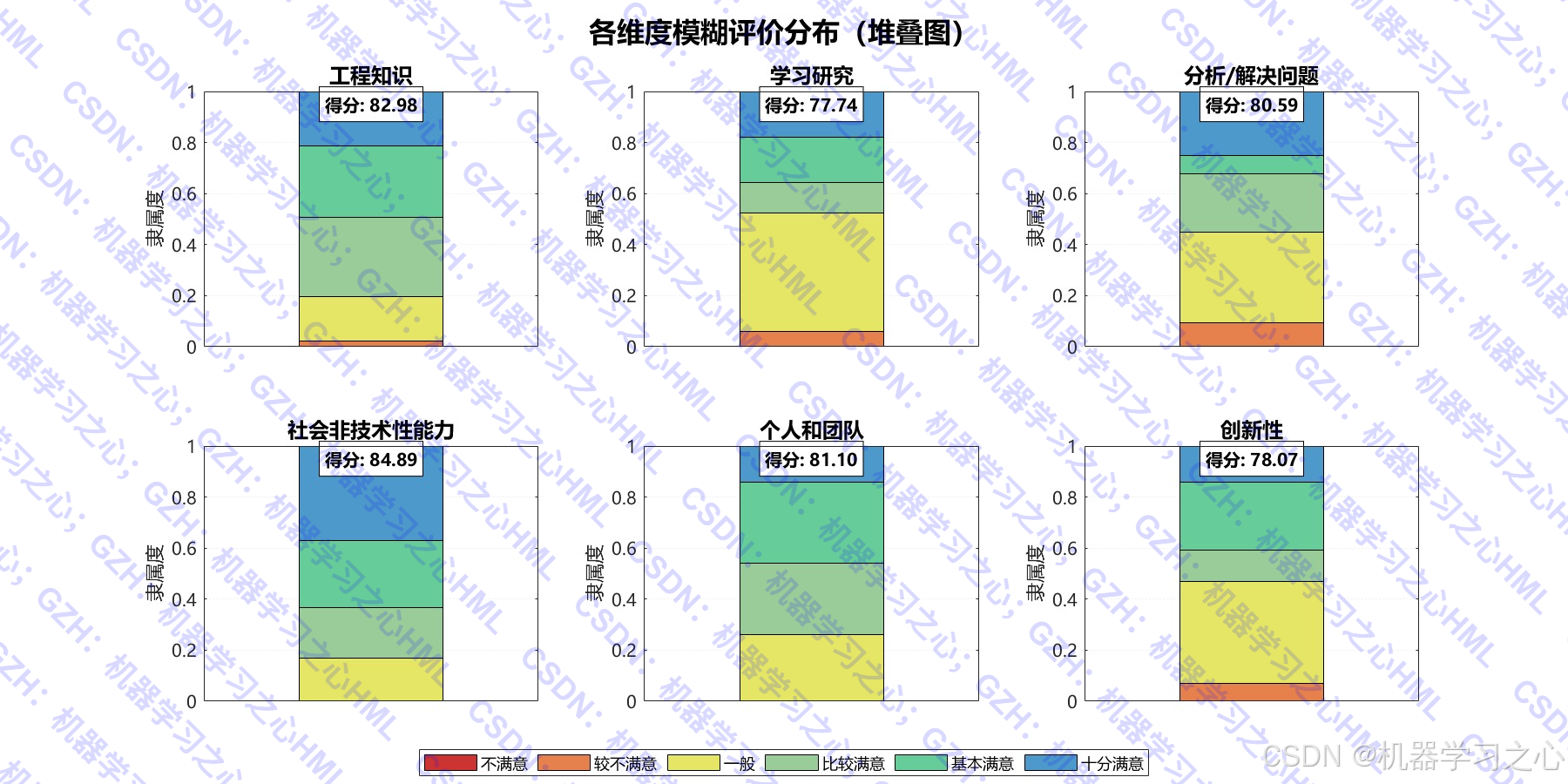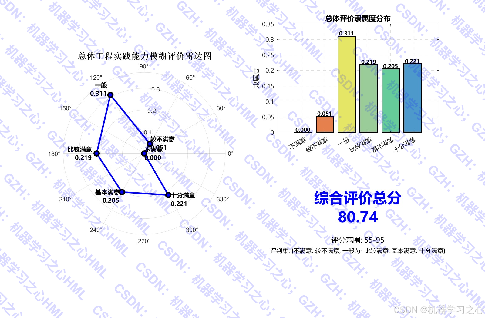 - 模糊综合评价:基于模糊隶属度矩阵,计算各维度及总体评价得分。