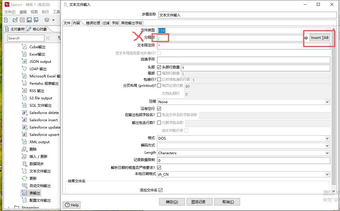 分隔符一定要换成tab,因为你上面传输的文件是用tab分割的