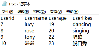 案例1:【文本输入+表输出】: 从文本文件导入数据到mysql库中的表t _ users 中;