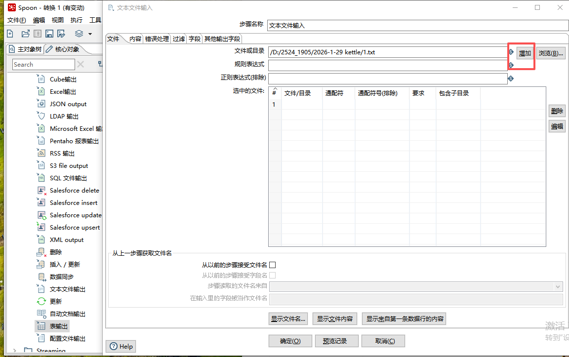 然后一定要点增加,才会过去下面的"选中的文件这个列表"