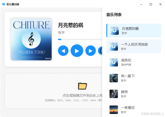 播放音乐并可点击或者拖拽文件上传